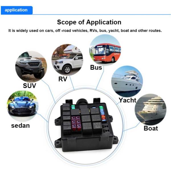 It is widely used on cars, off -road vehicles, RVs, bus, yacht, boat and other routes. Free combination, a wider range of new energy fuse box can be connected to any circuit, such as: roof lights, car headlights, fog lights, warning lights, car refrigerator, car charger, car fan, car TV, etc. When the current is too high, the safety piece will fuse and cut off the current when the current abnormally rises to a certain height and a certain temperature, so as to protect the safe operation of the circuit.